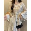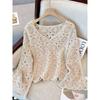 Spring/summer Women's Knitwear Thin Cut-out Bell Sleeve Knit Sweater Round Neck Loose Knit Top Knit Lace Blouse