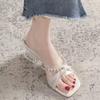 Cool slippers women's summer wear 2025 new thick heel high heel beach sandals fairy style with skirt casual sandals