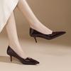 Shallow single shoes women's autumn new commuter professional four-season shoes European station pointed thin heel patent leather black high heels