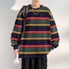 Men's Spring and Autumn New Outdoor Trendy Brand Striped Couple Hong Kong Style Long Sleeve Round Neck T-shirt Pure Cotton Hoodie