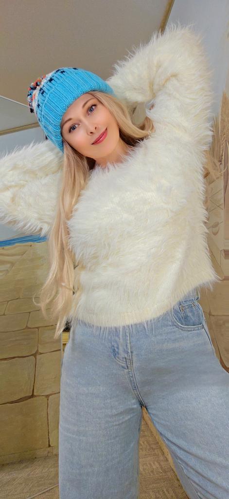 New Arrival Autumn Winter Women's Fluffy Faux Mink Sweater-Soft Fuzzy Pullover Slash Neck Gray Beige Warm Feminine Sweater