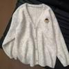 Retro puppy sticker soft glutinous sweater cardigan women's autumn and winter wear loose lazy wind knitted sweater top