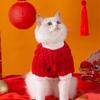 New Year's cat clothes are festive and New Year's greetings can be traced to a puppet, a blue cat to keep warm, a fleece jacket, a puppy, a kitten,