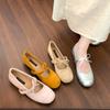 Inner height increase single shoes women's 2025 spring new Korean version grandma shoes elastic band word with bow Mary Jane shoes