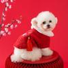 Puppy dog clothes New Year's blessing is coming, festive Teddy Yorkshire New Year's greetings turtleneck fur edge pet two-legged cotton-padded coat