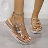 Large size summer new sequins fashionable one-word buckle with platform sandals versatile and comfortable women's sandals