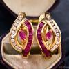 Oval Blue/Red Cubic Zirconia Dangle Earrings for Women Luxury Silver Color Wedding Accessories Elegant Lady Trend Jewelry