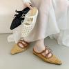 Inner heightening bag head half slippers women's summer outer wear new French woven hollow sandals bow Mary Jane single shoes