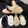 8Cm warm fluffy double strip versatile one-word slippers women's thickened fashion manufacturer round head flat-bottomed cotton slippers