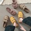 Design sense versatile single shoes bow thick-soled bag head half slippers women's summer fashion solid color suede lazy slippers