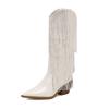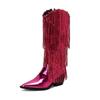 Fashion IPPEUM Fringe Cowboy Boots For Women Mid Calf Pu Leather Size 46 Winter Knee High Western Silver Cowgirl Shoes