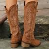 Fashion Women's Boots Embroidered Western Cowboy Boots Block Heels Knee High Boot Pu Leather Platform Shoes Retro Womens Boots Zapatos