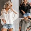 2019 Summer Women Blouse Casual Lady V Neck Lace Blouse Tops