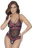 Body String En Dentelle Et Résille Noire Avec Perles à L'entrejambe R2642425