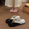 French heightening metal round buckle toe flip-flops shoes for women to wear in summer, super fire is not tired, foot slope heel cool slippers for