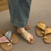 Woven cool slippers fairy shoes outer wear 2025 summer flat-bottomed vacation beach shoe cover toe sandals