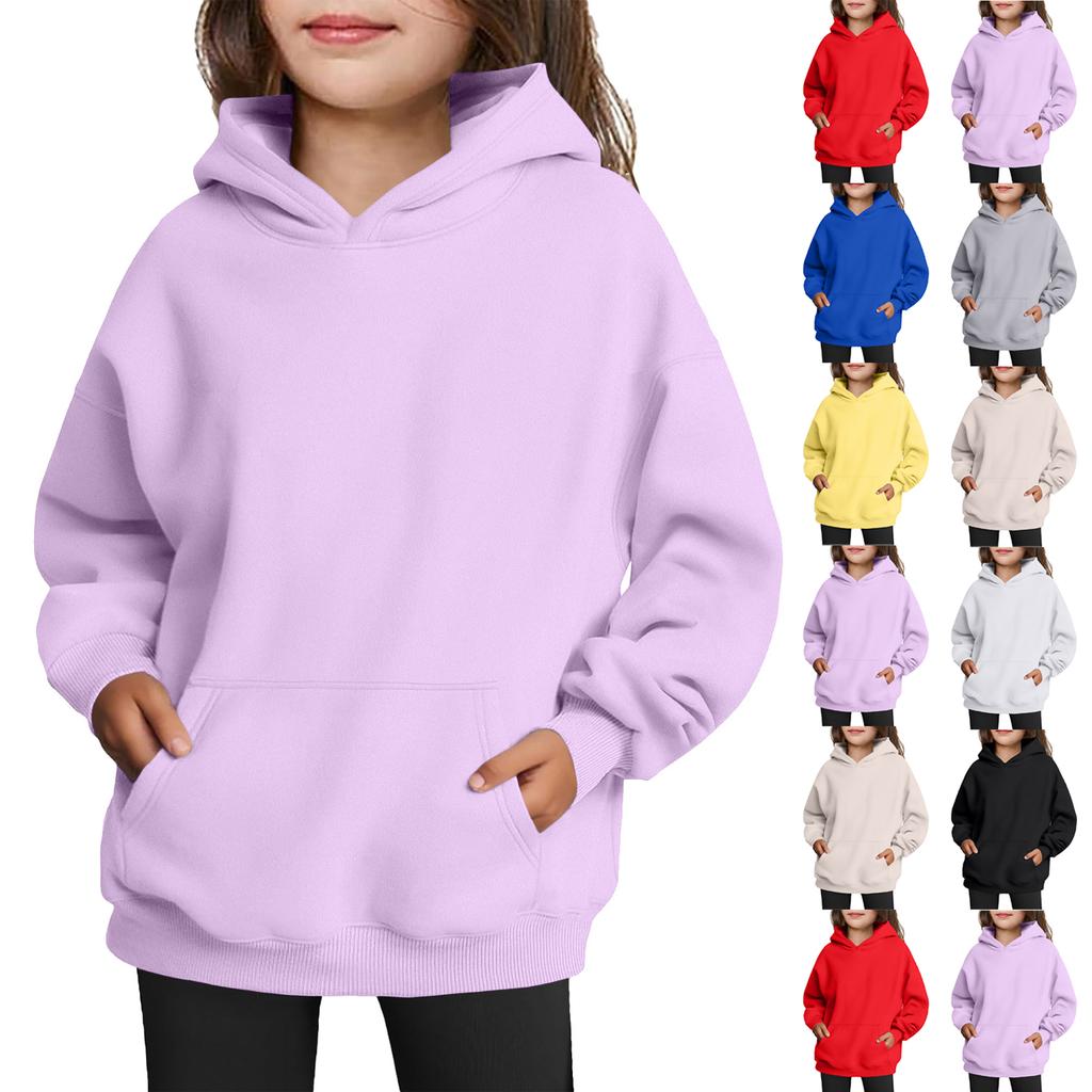 Vinter Gutt og Jenter Ensfarget Langermet Hettegenser Topper