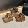 Martin boots women's flat bottom 2025 new autumn and winter British style lace-up retro short boots thick-soled heightening velvet matte boots
