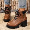 Autumn and winter ebay supply fashion thick-soled high-heeled large-size front lace-up low-tube Martin boots women