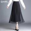 Qooth Women Gentle Solid Color Pleated Skirt Casual Elastic Waist Colorful A-line Skirt For Spring Summer QT2416