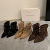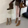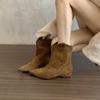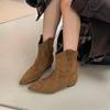 Martin boots women's 2025 autumn new wasteland lace pointed thick heel thin pile boots western cowboy short boots