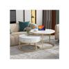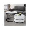 Couchtisch Rund 2er Set Satztische, Moderne Edle Nesting Kaffeetisch Oval Sofatisch Schubladen, Tischplatte Marmormuster, Balkon Büro, Weiß