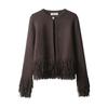 Discover the perfect blend of style and comfort with this elegant tassel knit sweater. Crafted from high-quality knitted material, this sweater offers a cozy and soft feel, ideal for the cooler seasons. Its solid pattern and classic round neckline provide a timeless look, while the long sleeves offer additional warmth. The standout feature of this sweater is its fringe decoration, adding a chic and playful touch to your ensemble. Perfect for a casual day out or a cozy night in, this sweater is a versatile addition to any wardrobe.