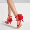Kristal Kraliçe Kadın Sandaletler Kırmızı Gül Çiçeği Çapraz Bağlı Yüksek Topuklu Açık Burunlu Yaz Topukluları Bayan Elbise Seksi Ayakkabılar
