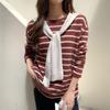 Crew neck striped polished long-sleeved shirt women's autumn and winter lazy style inner bottoming shirt loose top
